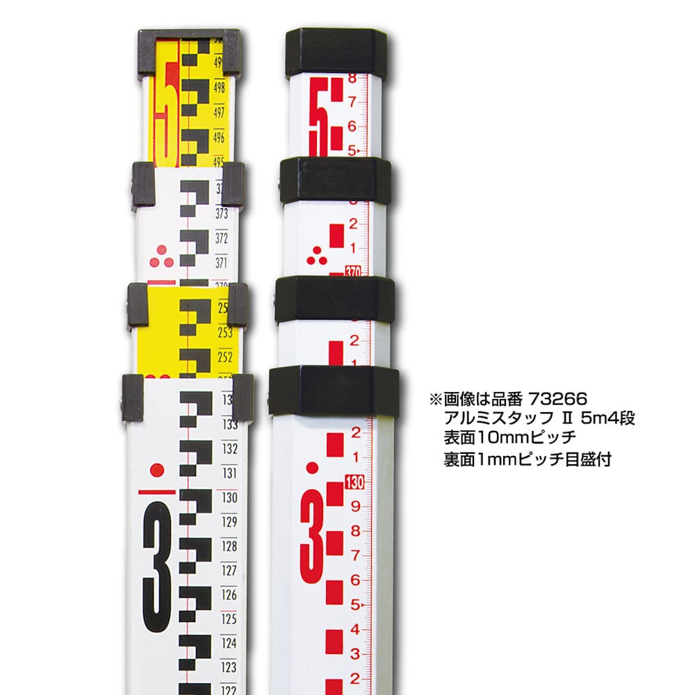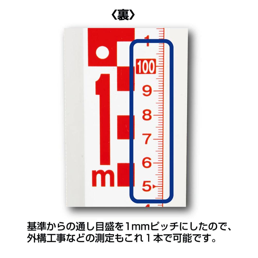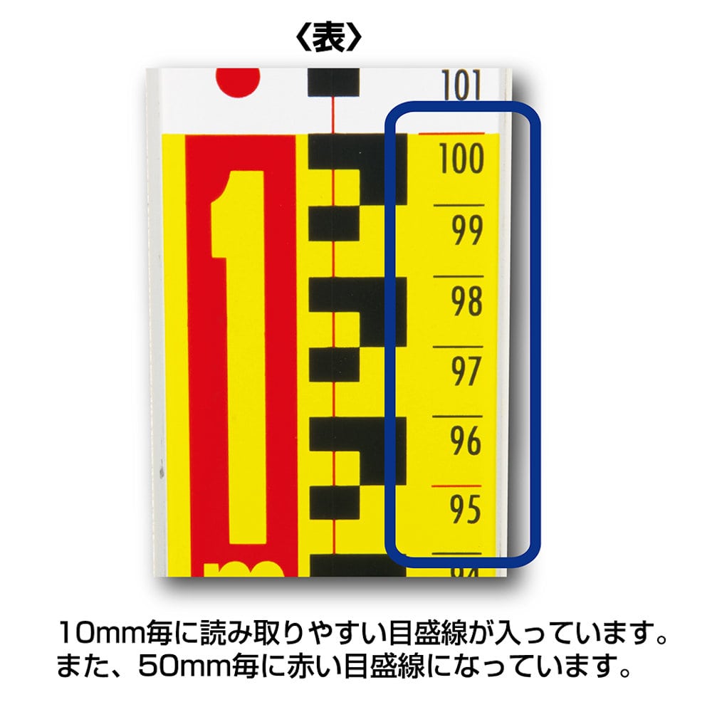 ●測量作業に。●表目盛:10mmピッチ、1mごとに本体色を黄・白色分け●裏目盛:1mmピッチの通し目盛付●本体:アルミ●ジョイント部:ABS樹脂●タイプ(段):3●幅(mm):50●縮長~全長(mm):1188~3000