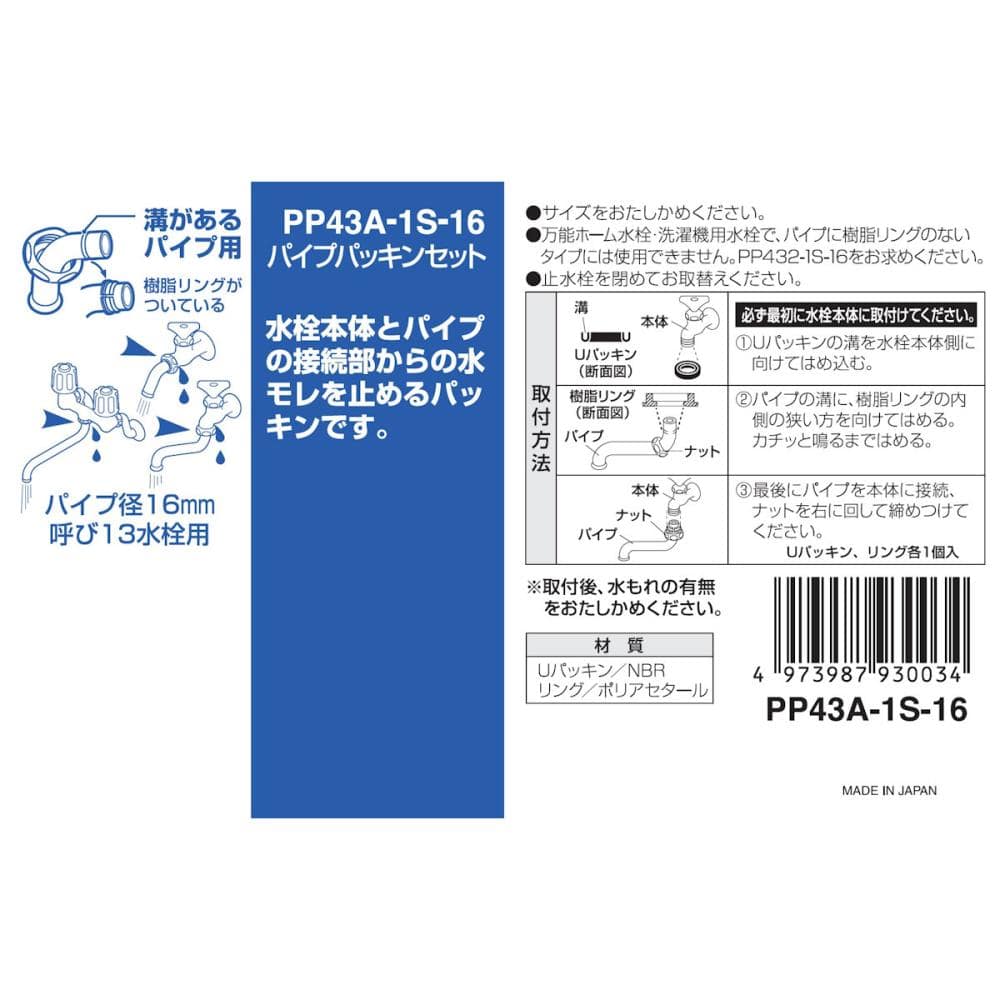 万能ホーム水栓、洗濯機用水栓で、パイプに樹脂リングのないタイプには使用できません PP432-1S-16をお求めください
