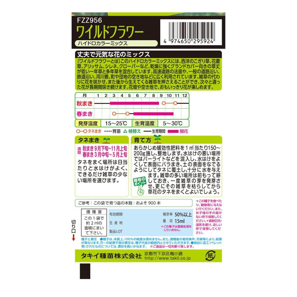 ※タネまき期間、収穫期間はおよその目安です。栽培地の条件に応じて参考にしてください。※この種子を食べたり、動物等に与えないでください。また、お子様の手の届かない所で保管してください。※直射日光・湿気を避け、涼しい所で保管してください。※種子は、本日上、100%の純度は望めません。また、播種後の栽培条件、天候等により、結果が異なります。万一の結果不良の責任は種子代金の範囲内とさせていただきます。独自に加工(ペレット等)されたものについては、責任を負いかねます。