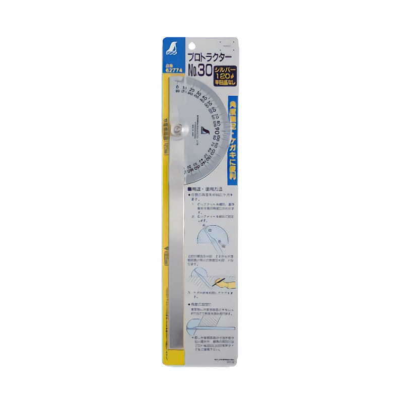 ●角度の測定やケガキに使用するプロトラクター●目量:1°●本体:ステンレス(SUS420J2)●ねじ:真鍮●用途以外には使用しないで下さい。●直径(mm):120●竿全長(mm):245●分度板厚み(mm):1.5●竿目盛:●器差(分):