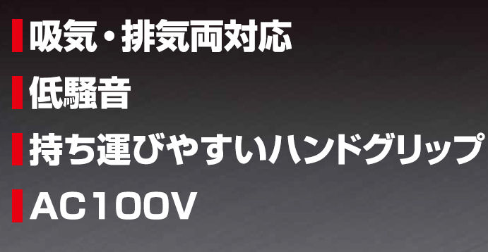 "●材質:アルミ合金・銅●消費電力:300W/500W(50HZ/60HZ) ●風圧:295Pa/350Pa(50HZ/60HZ) ●風量:45立方m(分)/55立方m(分)(50HZ/60HZ)"