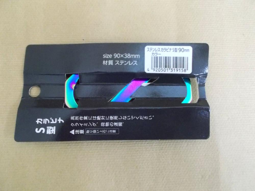 K+ ステンレスS型カラビナ 90mm カラー