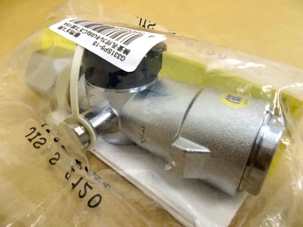都市ガス用 検査孔付フレキULネジガス栓。プッシュインパクト継手付 15A×Rc1/2 黄銅製