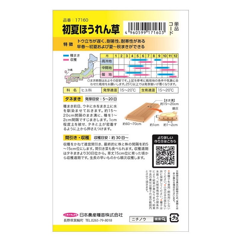 トウ立ちが遅く、耐暑性、耐寒性がある。早春~初夏および夏~秋まきができる。