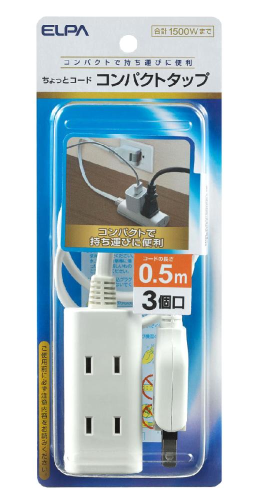 ■定格:AC125V 15A ■合計1500Wまで ■使用温度範囲:-10℃~40℃ ■屋内専用 ■コードの長さ:0.5m ■3個口
