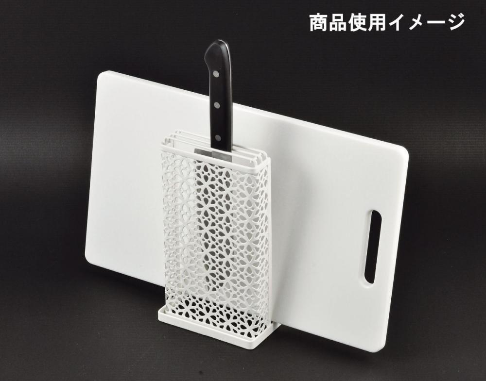 厚さの違うまな板2枚と包丁2本をすっきり収納。