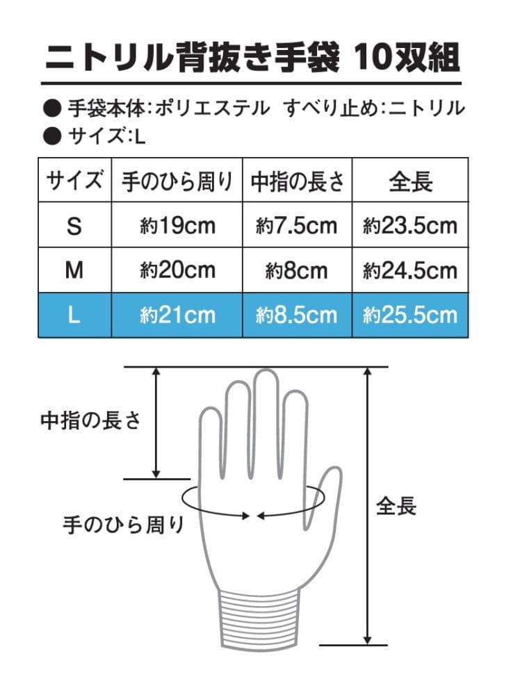 シリーズ名:ニトリル背抜き手袋
