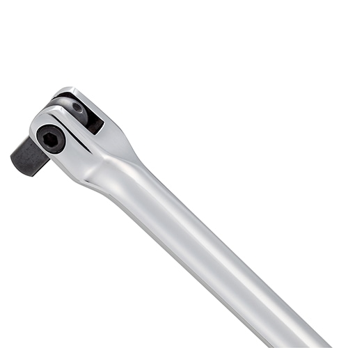 ハンドルを立てて早回しや、ハンドルを横にして大きなトルク作業ができます。奥まったボルト・ナットの締緩作業、ドライブシャフトやブレーキなど足回り作業にも最適です。
