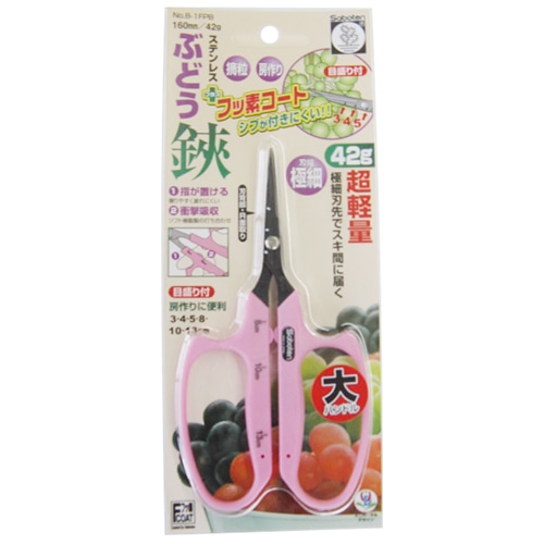 スキ間に届きやすい極細刃先です。刃部はステンレスにフッ素樹脂加工でさび・ヤニに強く汚れがつきにくいです。刃・ハンドルに目盛がついていて房つくりに便利です。ソフト樹脂製で衝撃を吸収するので手や手首に負担がかかりません。