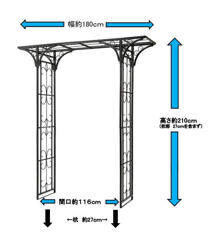 ●商品サイズ:約幅180(間口:約116cm)×奥行50×高さ210cm※杭部高さ27cmを含まず。 ●材質:スチール ●規格色:黒