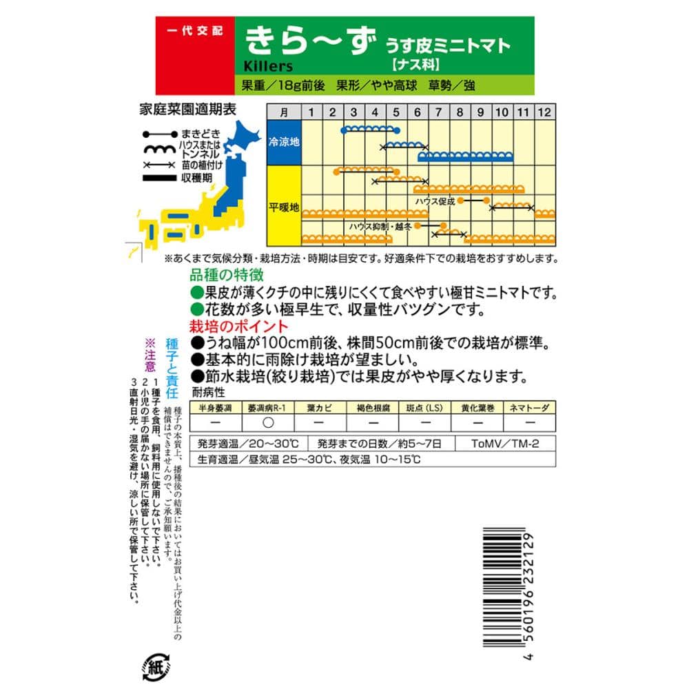 果皮が薄くクチの中に残りにくくて食べやすい極甘ミニトマトです。花数が多い極早生で、収量性バツグンです。
