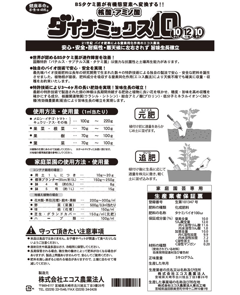●世界が認めるBSタケミ菌が連作障害を改善。国際特許「バチルス・サブチルス属・タケミ菌」は強力な抗菌性と土壌再生能力があります。!