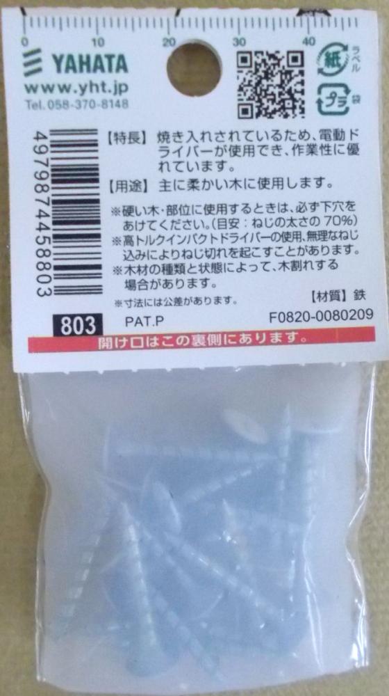 材質は鉄で、ユニクロめっきです。電動ドライバーを使用でき、下穴が不要のため作業性に優れます。