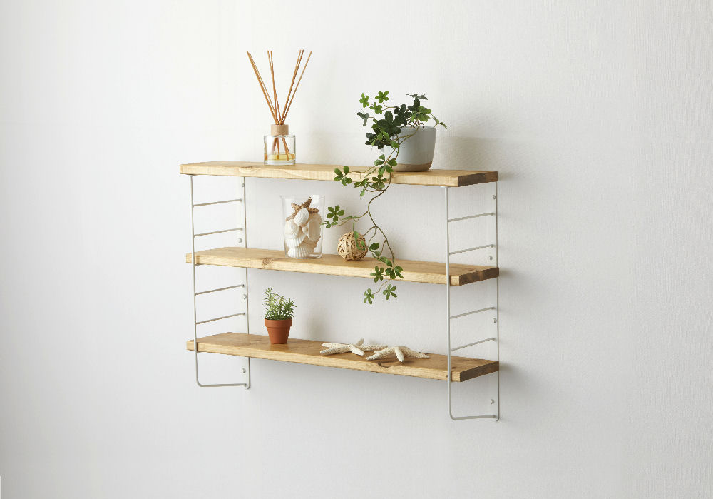 本体=鉄・エポキシ樹脂紛体塗装 樹脂部品=ABS樹脂、EVA樹脂 ピン=ステンレス ねじ類=鉄・メッキ 棚受け金具=鉄・エポキシ樹脂紛体塗装