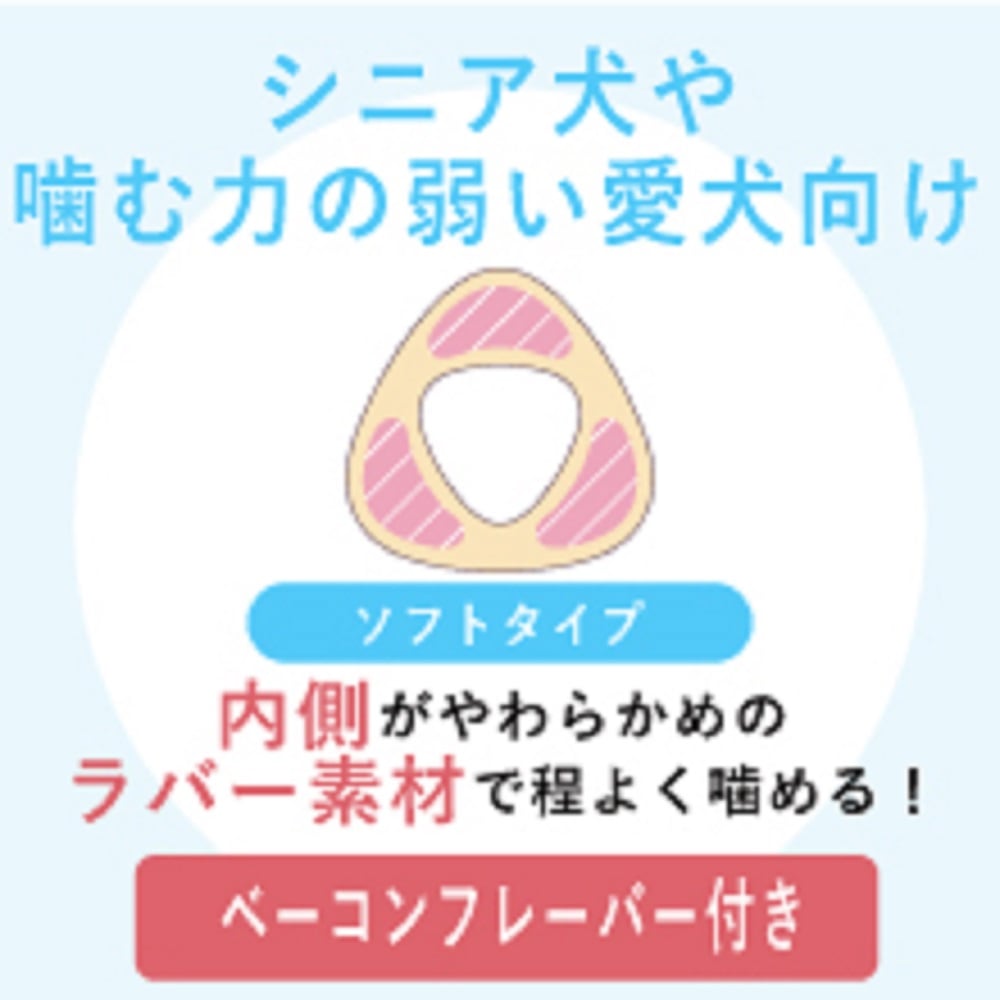 ソフトタイプの犬用デンタルトイ。誤飲しにくい形で、幼犬の歯固めにも最適。