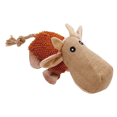 パーツごとに異なる生地を使用しビッグサイズなので、かみ心地バツグン。ブーブー鳴く笛入りと大好きなロープがついているので、ワンちゃん夢中。