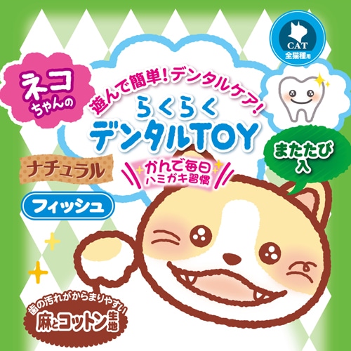 遊びながらハミガキ習慣!ネコちゃんのためのデンタルTOY。歯の汚れがからまりやすい麻とコットン生地使用。またたび入り。