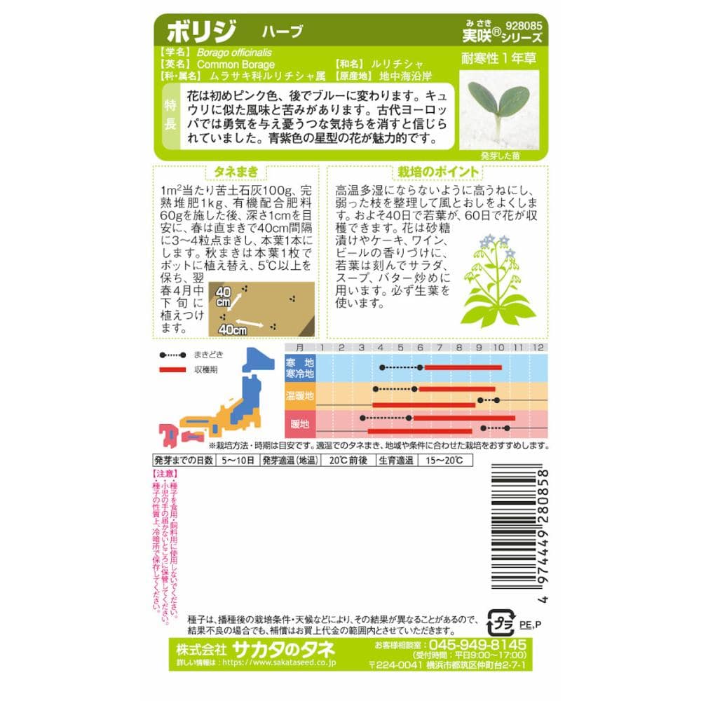 花は初めピンク色、後でブルーに変わります。キュウリに似た風味と苦みがあります。古代ヨーロッパでは勇気を与え憂うつな気持ちを消すと信じられていました。青紫色の星型の花が魅力的です。ハーブ用途:料理、ポプリ、ハーブティー