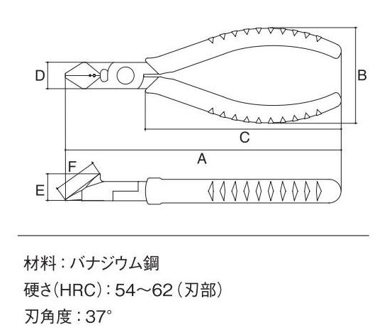 ●切断能力(mm)鉄線:φ1.4●切断能力(mm)銅線:φ2.6●全長(mm):158●ラウンド刃●バナジウム鋼●電気工事業