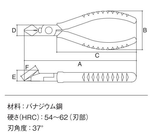 ●切断能力(mm)鉄線:φ1.0●切断能力(mm)銅線:φ1.2●全長(mm):114●ラウンド刃●バナジウム鋼●電気工事業