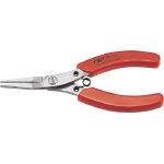 ●全長(mm):130●厚さ(mm):3.0●A(mm):-●切断能力(mm):-●ばね付●先端部ギザなし●特殊グリップ●ステンレス(SUS420J)●電子部品の組付け、医療機器、ホビーに