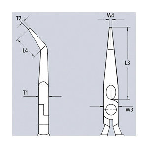 ●ヘッド仕上げ:クロムメッキ●ハンドル仕様:1000V絶縁ディップコーティング(VDE絶縁テスト済み)●スタイル:半丸口●つかみ面:横すじ入り●切断面:傘状●切断能力(中硬線;径mm):3.2●切断能力(硬線;径mm):2.2●口先の長さ(L3;mm):73●口先(曲がり)の長さ(L4;mm):23●ジョイント部の厚さ(T1;mm):9.5●ジョイント部の幅(W3;mm):18●口先先端の幅(W4;mm):3●口先先端の厚さ(T2;mm):2.5●全長(mm):200●質量(g):220●先曲がり角度(°):40●入念な焼入れ処理が施されたカッター部の硬度は約HRC61。●材質はオイル焼き入れ焼き戻し処理済みのバナジウム電気鋼。●鍛造により大変頑丈です。●DIN EN/IEC60900基準に適合。●くちばし型プライヤー。●高負荷にも耐える柔軟な精密先端部。●平坦円形の、長いアゴ。●掴み面に歯形が付けられています。●径3.2mmの中硬線および径2.2mmの硬線のカッター付き。●スリムで繊細な先端にもかかわらず、特に曲げ加工を中心とした、強い力を要する作業に対しても充分に対応できます。