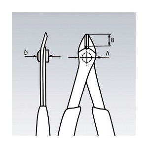 ●ヘッド仕上げ:磨き●ハンドル仕様:ESD●切断面:フラット●切断能力(軟線;径mm):0.2-1.6●切断能力(中硬線;径mm):1.0●ジョイント部の幅(A;mm):13.5●口先の長さ(B;mm):9.0●ジョイント部の厚さ(D;mm):7.5●全長(mm):125●質量(g):57●極めて精密なエレクトロニクス関連、精密機器関連の切断作業に最適な高精度のニッパー。●刃はまっすぐで切断面がフラットに仕上がります。●先端は精密に仕上げられており、密集したワイヤーも直径0.2mm以上あれば切断することができます。●ジョイント部はステンレス製のリベットで接合されています。●小さな力でも大変スムーズに可動します。●繰り返しの作業に便利なオープンスプリングと、先端が一定の間隔以上開くのを防ぐストッパー付き。●材質はステンレス鋼。●刃の硬度は約54HRC。●ワイヤーキャッチ付きで、切断したワイヤーが飛び散ることがありません。●静電気防止ハンドル。●静電気エネルギーがゆっくりとハンドルから誘導されます。●静電気によって被害を受けるコンポーネントを保護します。●ハンドルは複数の材質で作られたプラスチックカバー付き。※コンフォートハンドル(本品)は絶縁ではありません。