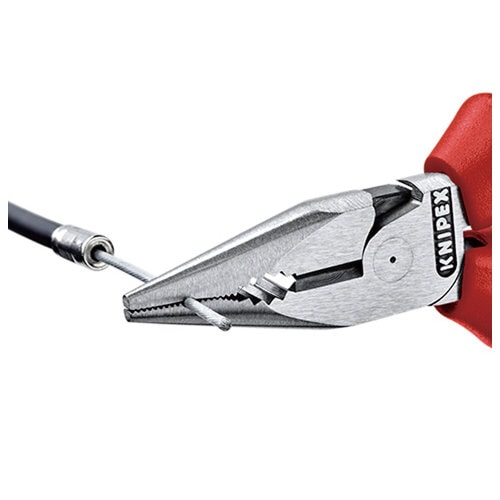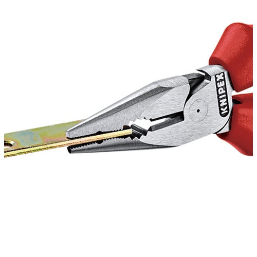 ●ヘッド仕上げ:研磨●ハンドル仕様:コンフォート●プライヤー:亜鉛合金メッキ(黒)●スタイル:平口●つかみ面:横すじ入り●切断能力(中硬線;径mm):3.0●切断能力(硬線;径mm):2.0●銅線(多芯)の切断能力(径mm):8.0●銅線(多芯)の切断能力(mm2):16.0●全長(mm):145●質量(g):145●鍛造により大変頑丈です。●材質はオイル焼き入れ焼き戻し処理済みの特殊工具鋼。●スリムなヘッド形状と先の尖ったジョーにより(確実な回り止め)、アクセスが難しい箇所でも最適に作業できます。●掴持面の片側を凸形にして、平坦な部品を確実に掴持します。●フライス加工した掴持部分の溝により、釘、ピン、ボルトなどの小さなワークピースを確実に保持し、引き抜きます。●信頼性が高く、さまざまな用途に対応した先細コンビネーションプライヤー(携帯用)。●切断面は傘状で斜め刃。●高いテコ比の強力ジョイントにより、切断が簡単に行えます。●中硬線および硬線用の切刃付き。●長い耐久性と安定した刃先。●複数の材質で作られたプラスチックカバー付きハンドル。※コンフォートハンドル(本品)は絶縁ではありません。