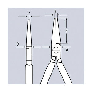 ●ヘッド仕上げ:クロムメッキ●ハンドル仕様:プラスチックコーティング●スタイル:広い平口●つかみ面:フラット●ジョイント部の幅(A;mm):12.5●口先の長さ(B;mm):27.0●ジョイント部の厚さ(D;mm):7.0●口先先端の幅(E;mm):2.0●口先先端の厚さ(F;mm):5.5●全長(mm):125●質量(g):71●極めて精密なエレクトロニクス関連、精密機器関連の組み立て作業に最適な高精度のプライヤー。●先端は精密に加工されています。●つかみ面はフラットで部品に傷をつけません。●ヘッドは丁寧に面取りされています。●2枚合わせジョイント。●鍛造で大変頑丈です。●材質はオイル焼き入れ焼き戻し処理済みのクロームバナジウム電気鋼。●精密機械用。●部品をつかむ、曲げる、調整する作業に。