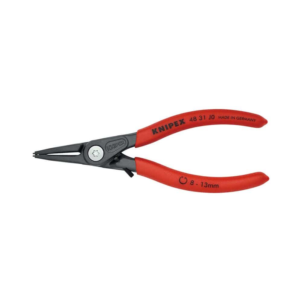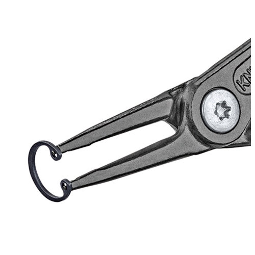 ●ヘッド仕上げ:グレー防錆コート●ハンドル仕上げ:プラスチックコーティング(滑り防止仕上げ)●差込先端部仕上げ:ばね鋼線引き抜き加工●プライヤーボディ材質:クロムバナジウム電気鋼(油焼き入れ)●対応内径(径mm):8-13●先端チップ径(径mm):0.9●全長(mm):140●質量(g):105●簡単に穴用スナップリングの取り付け、取り外しができます。●先端チップは強靭な特殊バネ鋼製。●長時間使用における高負荷に耐え、ツール寿命は一般的なスナップリングプライヤーの10倍以上です。●スクリュージョイントを採用しており、大変滑らかに可動します。●鍛造により大変頑丈です。●先端チップはリングとの接触面積が広いため、リングを歪めず確実に保持することができます。●スリムなヘッド形状により、狭い場所での作業も可能です。●ストレートな先端部。●ストッパーによって調整可能なクロージングリミッター付き。●ソケットヘッドネジによって調整。●リングの過度の膨張が有効に防止されるため、連続生産に最適。●高硬度ばね鋼製の先端部はポジティブ結合によって取り付け、圧着されているので、固くはまり込んだスナップリングを取り外す場合など、過度な負荷でも非常に安定しています。●広い接触面と先端部のポジションにより、リングが飛び出し難くなっています。●先端部には、刻み目のない高硬度ばね鋼製が使用されています。●先端部は動的にも静的にも高い負荷に耐えます。●開き制限ガードが付いているので、規格に合うだけでなく耐久性にも優れています。●穴用。※作業の際には必ず安全ゴーグルを着用して下さい。