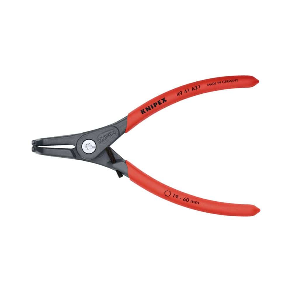 ●ヘッド仕上げ:グレー防錆コート●ハンドル仕上げ:プラスチックコーティング(滑り防止仕上げ)●差込先端部仕上げ:ばね鋼線引き抜き加工●プライヤーボディ材質:クロムバナジウム電気鋼(油焼き入れ)●対応シャフト径(径mm):19-60●先端チップ径(径mm):1.8●先端曲がり角度(°):90●全長(mm):165●質量(g):169●簡単に軸用スナップリングの取り付け、取り外しができます。●先端チップは強靭な特殊バネ鋼製。●長時間使用における高負荷に耐え、ツール寿命は一般的なスナップリングプライヤーの10倍以上です。●スクリュージョイントを採用しており、大変滑らかに可動します。●鍛造により大変頑丈です。●先端チップはリングとの接触面積が広いため、リングを歪めず確実に保持することができます。●スリムなヘッド形状により、狭い場所での作業も可能です。●90°ベントヘッド。●スプリングはジョイント部に内蔵し保護されているので、作業の邪魔にならず、汚れたり失くしたりしません。●ストッパーによって調整可能なクロージングリミッター付き。●ソケットヘッドネジによって調整。●リングの過度の膨張が有効に防止されるため、連続生産に最適。●高硬度ばね鋼製の先端部はポジティブ結合によって取り付け、圧着されているので、固くはまり込んだスナップリングを取り外す場合など、過度な負荷でも非常に安定しています。●広い接触面と先端部のポジションにより、リングが飛び出し難くなっています。●先端部には、刻み目のない高硬度ばね鋼製が使用されています。●先端部は動的にも静的にも高い負荷に耐えます。●開き制限ガードが付いているので、規格に合うだけでなく耐久性にも優れています。※作業の際には必ず安全ゴーグルを着用して下さい。