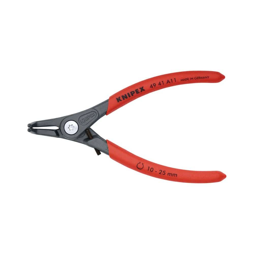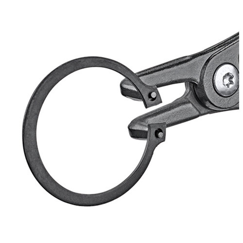 ●ヘッド仕上げ:グレー防錆コート●ハンドル仕上げ:プラスチックコーティング(滑り防止仕上げ)●差込先端部仕上げ:ばね鋼線引き抜き加工●プライヤーボディ材質:クロムバナジウム電気鋼(油焼き入れ)●対応シャフト径(径mm):10-25●先端チップ径(径mm):1.3●先端曲がり角度(°):90●全長(mm):130●質量(g):102●簡単に軸用スナップリングの取り付け、取り外しができます。●先端チップは強靭な特殊バネ鋼製。●長時間使用における高負荷に耐え、ツール寿命は一般的なスナップリングプライヤーの10倍以上です。●スクリュージョイントを採用しており、大変滑らかに可動します。●鍛造により大変頑丈です。●先端チップはリングとの接触面積が広いため、リングを歪めず確実に保持することができます。●スリムなヘッド形状により、狭い場所での作業も可能です。●90°ベントヘッド。●スプリングはジョイント部に内蔵し保護されているので、作業の邪魔にならず、汚れたり失くしたりしません。●ストッパーによって調整可能なクロージングリミッター付き。●ソケットヘッドネジによって調整。●リングの過度の膨張が有効に防止されるため、連続生産に最適。●高硬度ばね鋼製の先端部はポジティブ結合によって取り付け、圧着されているので、固くはまり込んだスナップリングを取り外す場合など、過度な負荷でも非常に安定しています。●広い接触面と先端部のポジションにより、リングが飛び出し難くなっています。●先端部には、刻み目のない高硬度ばね鋼製が使用されています。●先端部は動的にも静的にも高い負荷に耐えます。●開き制限ガードが付いているので、規格に合うだけでなく耐久性にも優れています。※作業の際には必ず安全ゴーグルを着用して下さい。
