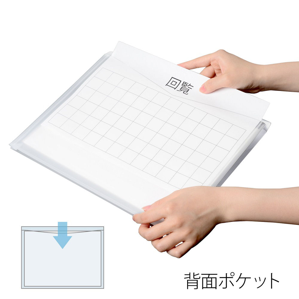 使い分けできる透明ポケット。筆記具・文具類も収納・携帯。