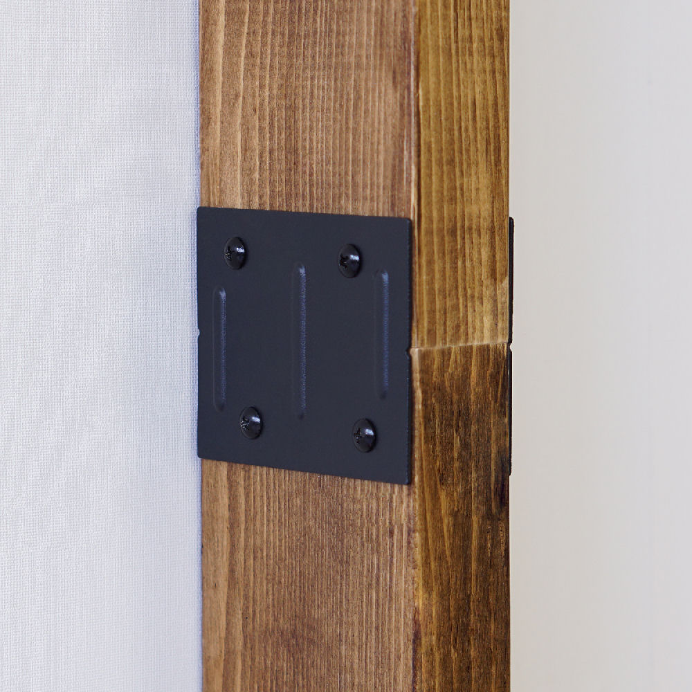 LABRICO(ラブリコ)シリーズ。シンプルかつ剛性感のあるデザインのアイアン製ジョイント(2×4材、1×4材どちらでも使用可能)。2×4材・1×4材を簡単に2本接合。8本のねじで両側からガッチリと固定できます。1セット、2個入り。
