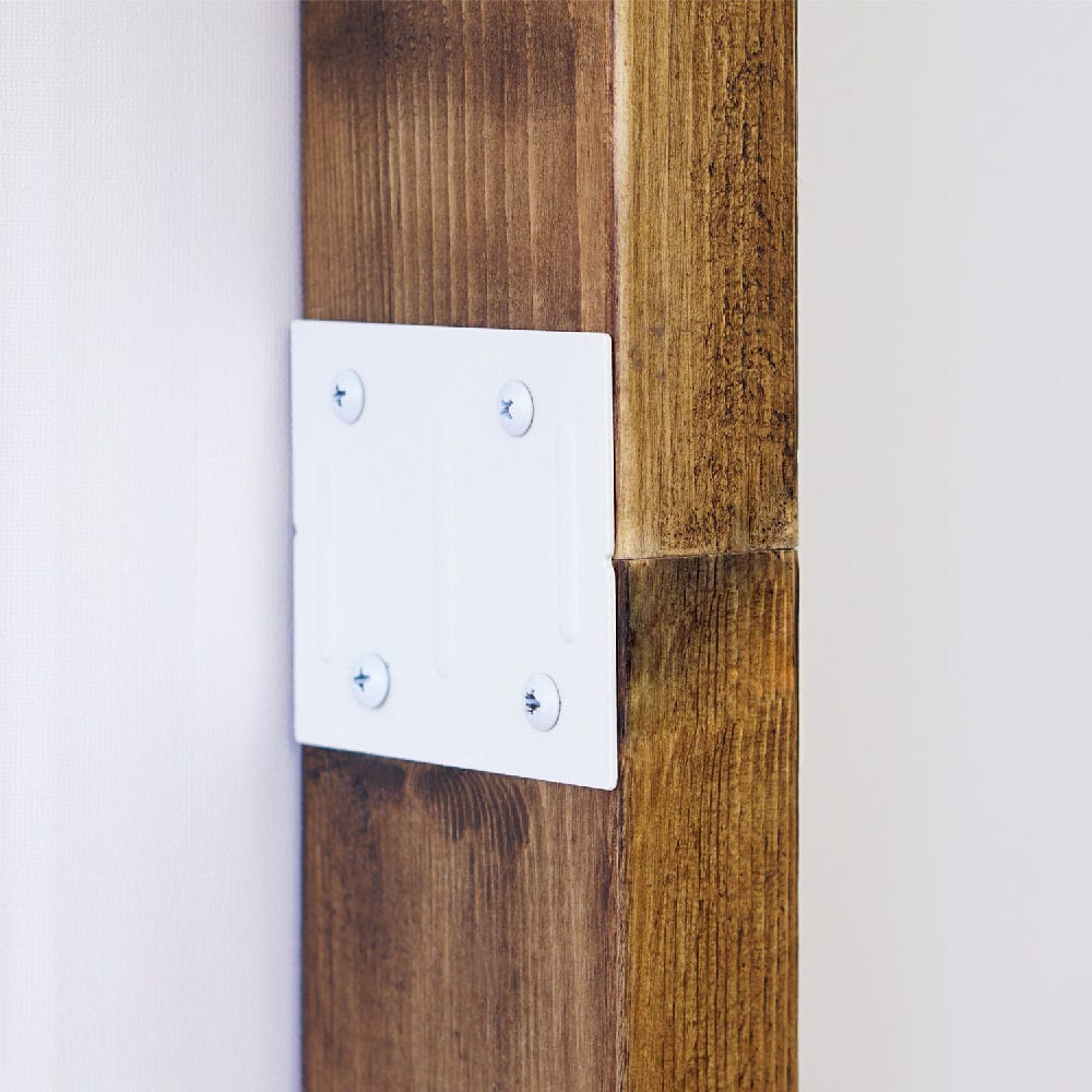 LABRICO(ラブリコ)シリーズ。シンプルかつ剛性感のあるデザインのアイアン製ジョイント(2×4材、1×4材どちらでも使用可能)。2×4材・1×4材を簡単に2本接合。8本のねじで両側からガッチリと固定できます。1セット、2個入り。