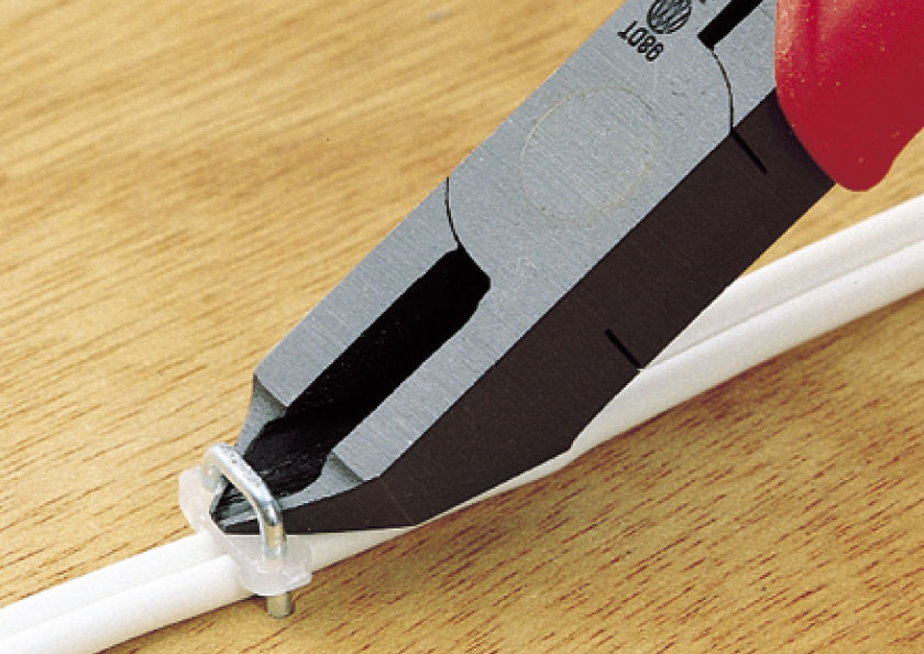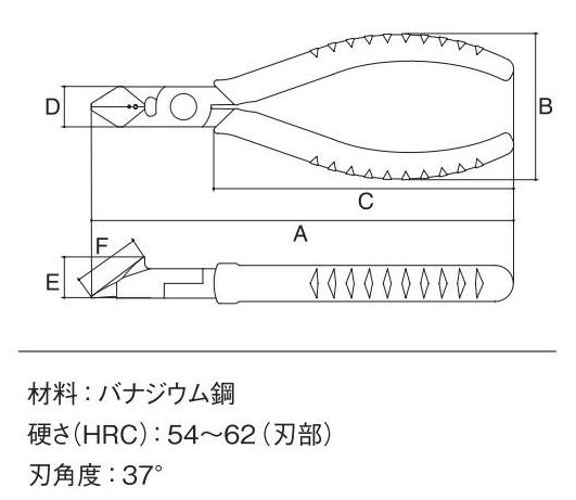 線材の切断、割線を一で各種電気配線工事を行ないます。 刃角度37°。斜め方向から刃を入れ、入り組んだ部分や奥深い場所で切断します。 ●手になじみやすいエラストマー樹脂グリップ。 ●連続作業が楽なコイルバネ付。 【切断能力】 鉄線:1.2mm 銅線:2.0mm より線:2.0mm