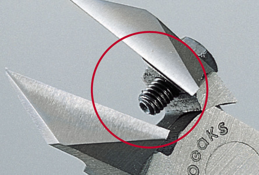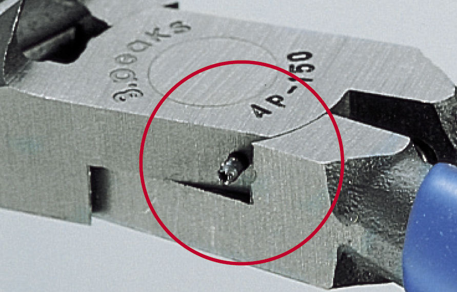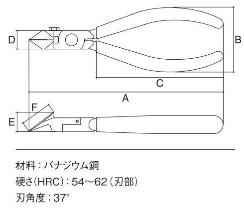 斜ニッパ型のプラスチックニッパ。入り組んだ部分や奥深い場所を切断できます。 ●刃部くい違い防止ストッパー付。 ●開きすぎ防止ピン付。 ●連続作業が楽なコイルバネ付。 【切断能力】 プラスチック:5.0mm