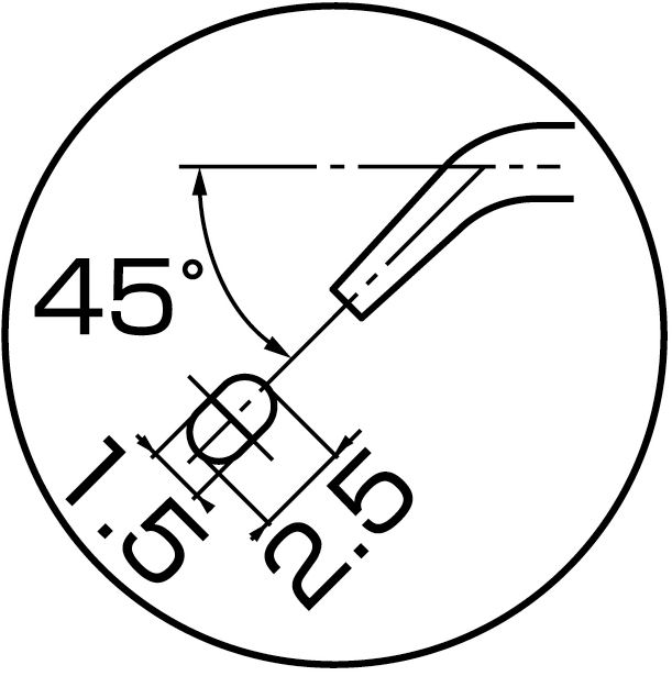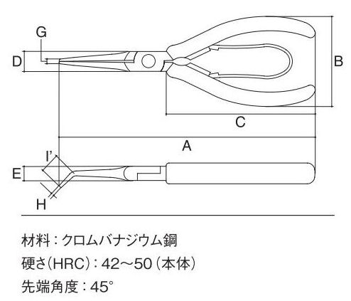 先端が細く長い。先端角度45°。刻みなし。拾う/つまむ/並べる。