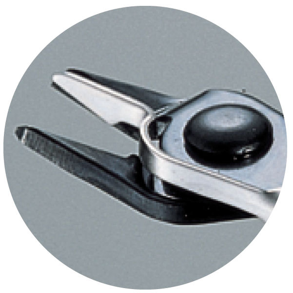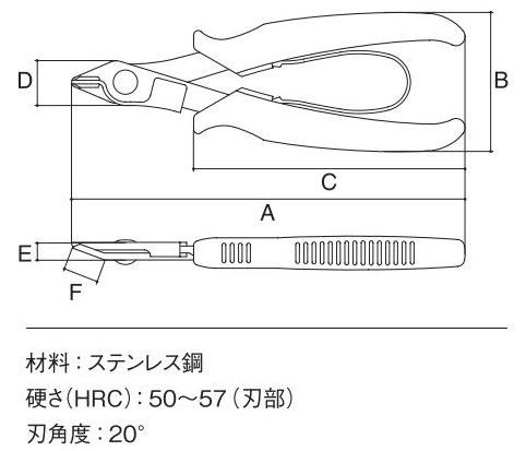 超軽量な板タイプ。 ●手になじみやすいエラストマー樹脂グリップ。 ●連続作業が楽なバネ付。 【切断能力】 銅線:1.6mm より線:2.0mm