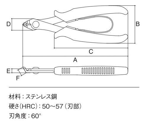 超軽量な板タイプ。 ●手になじみやすいエラストマー樹脂グリップ。 ●連続作業が楽なバネ付。 【切断能力】 銅線:1.0mm より線:2.0mm