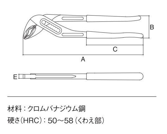 ●8段階の開き調整機構。 ●柄に指をはさみにくいストッパー付。 【使用範囲】 六角ねじ:10~41mm パイプ:6~43mm