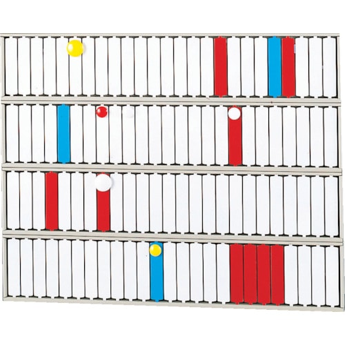 ●幅×奥行き×高さ(mm):585×18×465●プレート数:100●段数:4●回転標示盤(100口座)●スチール●補助プレート8枚(青)