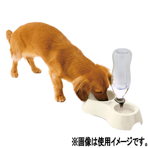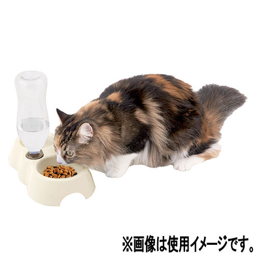 500mlペットボトル対応の給水器付樹脂製食器。給水スペース80ml、フードスペース160ml。ペットボトル接続部分は取り外し式なので水の入れ替えもラクラク!市販のペットボトル(500ml)に対応!汚れてもすぐに交換可能。しっかり止まるスベリ止め付き。
