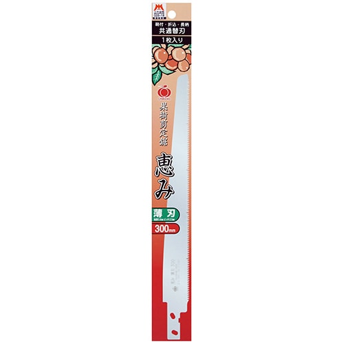 ●刃長:300mm。●ピッチ:2.5mm。●板厚:0.6mm。●衝撃焼入。●サビに強い特殊表面処理。●レーザーマーキング。●鋸刃:鋼。