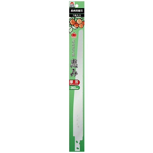 ●刃長:360mm。●ピッチ:2.5mm。●板厚:0.8mm。●衝撃焼入。●サビに強い特殊表面処理。●レーザーマーキング。●鋸刃:鋼。