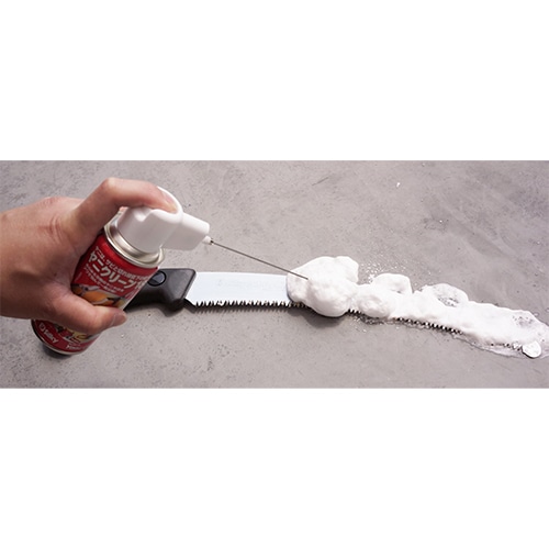 園芸刃物のお手入れはヤニクリーンとアイアンガードの併用で驚くほど簡単にできます。ヤニクリーンは泡で出るスプレータイプで、放置するだけで汚れを浮かせます。アイアンガードの水置換効果が洗浄後の面倒な拭き取り作業を不要にします。ノコギリだけでなく剪定ハサミ・ナタなど手工具から、ヘッジトリマーやチェンソーなど機械工具まで対応します。コンパクトな180mlサイズで持ち運びにも便利です。