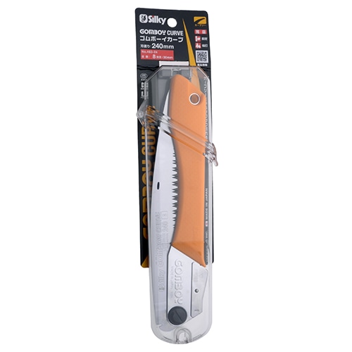 ●刃長:240mm(荒目)。●目数(30mm):8枚目。●刃厚:1.3mm。●切幅:1.2mm。●全長:折込時270mm・使用時500mm。●重量:260g。●アサリ無し・衝撃焼入・未来目。