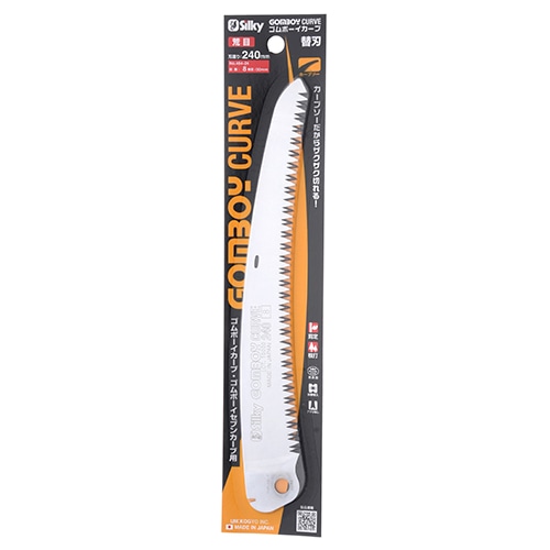 比較的荒い目数が切れ味(切断スピード)を高めるため、造園剪定に最適です。絹の切れ肌のような切り口に仕上がるので、皮巻きが早まり、病気から木を守ります。刃が緩やかなカーブを描いていることで、刃先が自然に食い込み、驚くほどの切断スピードを実現し、疲労も軽減されます。
