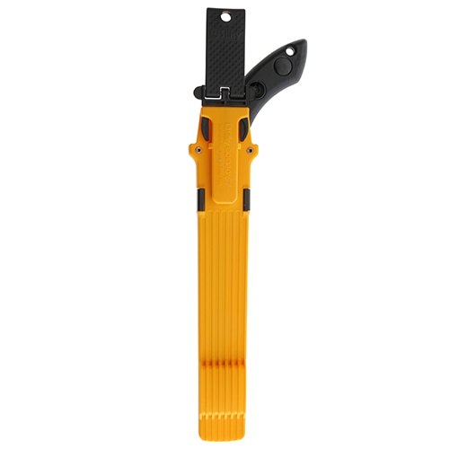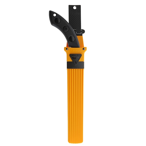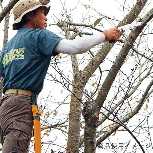 抜き差し便利で切れ味抜群です。足場が不安定な場所や肩より上での作業等、様々な場所で快適に剪定できます。カーブした刃は、直刃鋸と違い、刃が自然に食い込むので、引き下ろすだけで驚くほど楽に切れます。