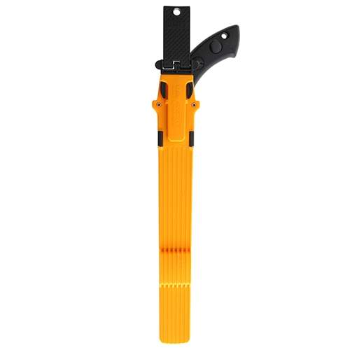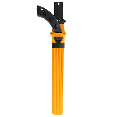 抜き差し便利で切れ味抜群です。足場が不安定な場所や肩より上での作業等、様々な場所で快適に剪定できます。カーブした刃は、直刃鋸と違い、刃が自然に食い込むので、引き下ろすだけで驚くほど楽に切れます。